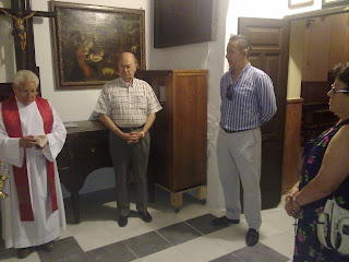 El martes 28 de junio, nuestro capellán adjunto, Don Andrés Cabeza, procedía a bendecir las instalaciones de la nueva Sacristía, provisional, que servirá durante el desarrollo de las obras de San Pedro Mártir. La estancia, situada en la parte izquierda conforme accedemos al recinto de la Capilla, está situada en la nave lateral de la que será nueva iglesia.
